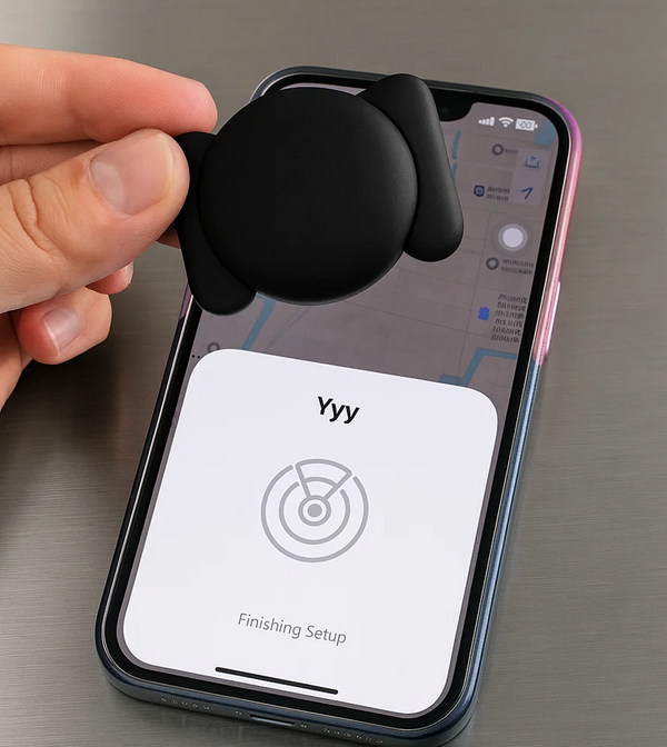 To set up your Trakva™ GPS Locator, open the Find My app on your iPhone (iOS 14.5 or later). Tap the Items tab, then select Add New Item. Press and hold the button on Trakva™ until it beeps or flashes. Your iPhone will detect it automatically. Follow the on-screen steps to name your item and finish pairing.